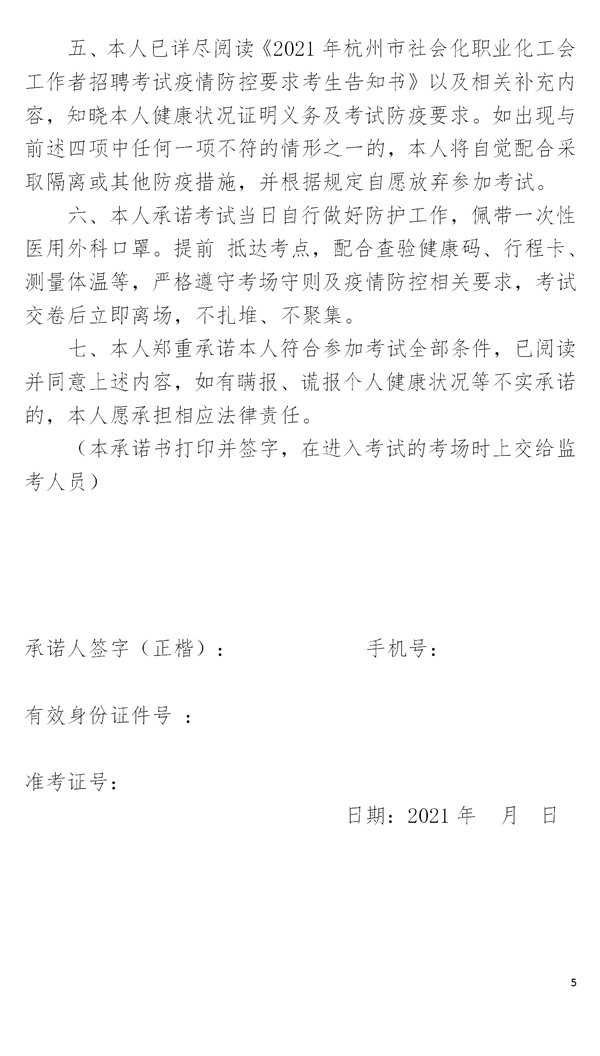 2021年杭州市社会化职业化工会工作者招聘考试疫情防控要求考生告知书