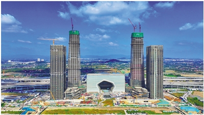 金手指综合体项目位于云城核心区、杭州西站枢纽站房南侧,除了A塔楼外,项目还包含建筑高度约300米的B塔楼、213米高的C、D塔楼,以及约80米高的云门。此次封顶的A塔楼,建筑高度320米,共61层,是目前“杭州第一高楼”,建筑面积约23.3万平方米,集观光、商业、酒店、公寓等多功能于一体,顶部设有“云眼”观景台,寓意“点赞杭州,引领未来”。项目预计2028年全面交付,届时将成为集交通枢纽、商务办公、商业休闲于一体的城市新地标,进一步提升杭州的区域辐射力和发展活力。