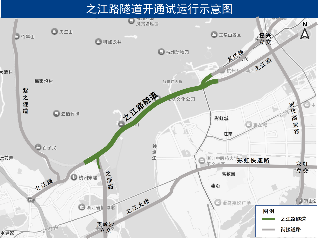 2025年12月28日上午10点,之江路隧道将开通试运行。